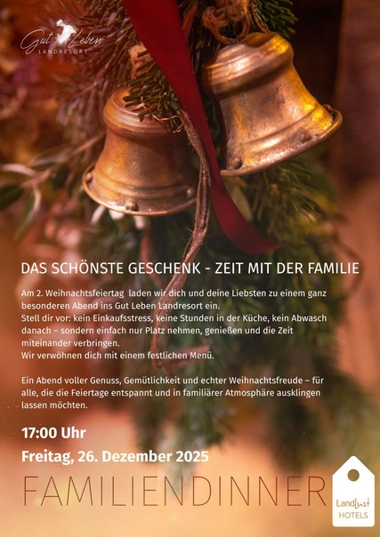 Am 2. Weihnachtsfeiertag laden wir dich und deine Liebsten zu einem ganz besonderen Abend ins Gut Leben Landresort ein.