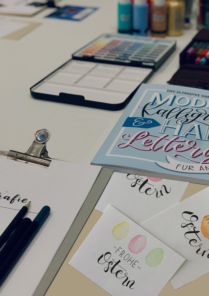 Du wählst aus verschiedenen Schreibinstrumenten, Materialien und Stilrichtungen und findest so Deinen eigenen Ausdruck.